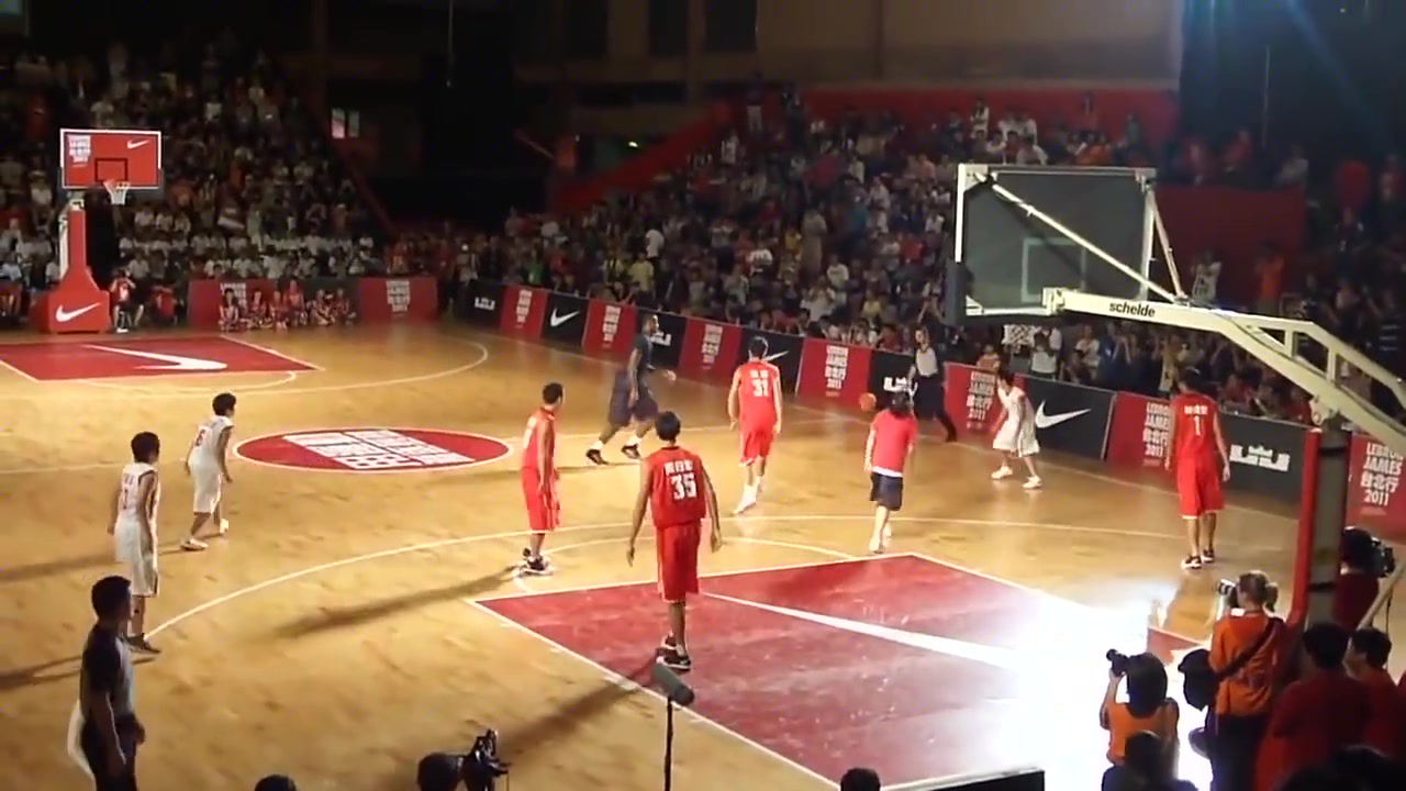 11月05日訊 2011年詹姆斯中國(guó)臺(tái)灣行現(xiàn)場(chǎng),當(dāng)時(shí)還是大學(xué)生的CBA上海隊(duì)球員劉錚,在現(xiàn)場(chǎng)MC“劉錚!抄他!他過(guò)不了你!”的鼓勵(lì)下,對(duì)試圖背運(yùn)擺脫的詹姆斯完成搶斷,隨后還面對(duì)詹姆斯的追防,上演一條龍快攻暴扣。