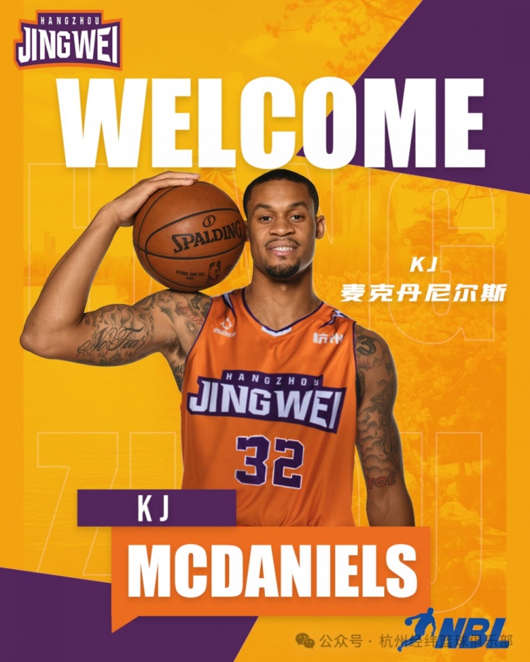 12月17日訊 NBL新軍杭州經(jīng)緯官方宣布,火箭舊將K.J.麥克丹尼爾斯加盟球隊(duì)。