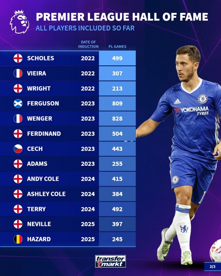 11月4日訊 德轉(zhuǎn)盤點了英超聯(lián)賽名人堂成員的英超比賽參與次數(shù),具體如下: