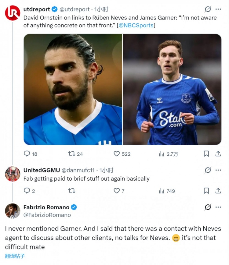 12月27日訊 知名記者羅馬諾社媒澄清,他并沒有說過曼聯(lián)與加納或魯本·內(nèi)維斯談判。