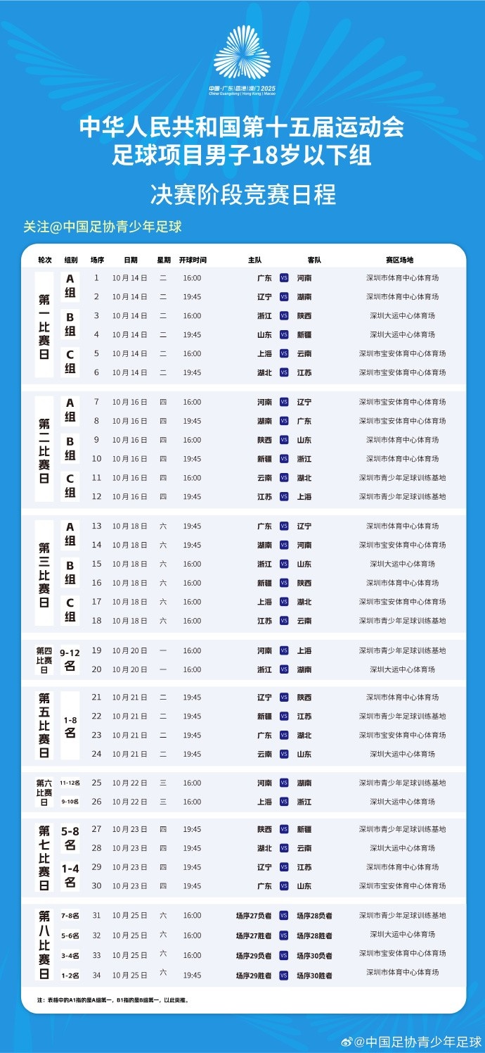 中華人民共和國(guó)第十五屆運(yùn)動(dòng)會(huì)足球項(xiàng)目男子18歲以下組決賽階段